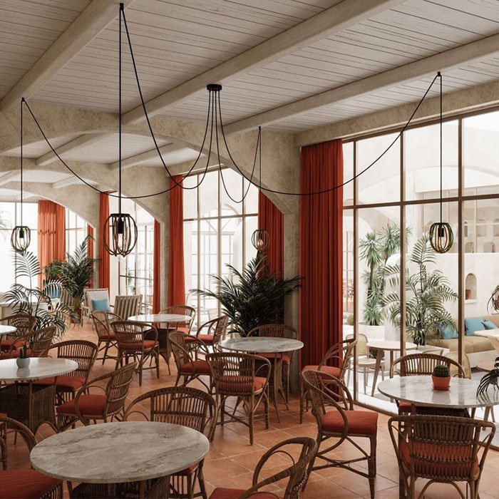 Na wygląd abażuru lampy z kabla Cablò-50 Black wpływa również odpowiednio dobrana oprawka żarówki i żarówka LED. Widać ją przez kable w oplocie tekstylnym. Przenosi ogólny styl abażuru na nowy poziom. Do abażuru lampy Cablò-50 Black polecamy raczej mniejsze rozmiary żarówek, takie jak A60 lub ST64.