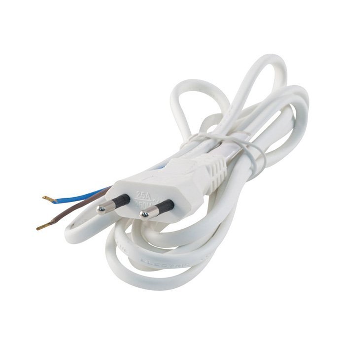 Biały przewód zasilający 2×0,75 mm² 2PIN to uniwersalny przewód zasilający przeznaczony do zasilania lekkich urządzeń elektrycznych, opraw oświetleniowych, lamp stołowych i dekoracyjnych oraz drobnej elektroniki domowej. Para żył (fazowa i robocza) umożliwia stosowanie w instalacjach, w których nie jest wymagany przewód ochronny. Przekrój 0,75 mm² zapewnia niezawodną przewodność do przesyłu niskich i średnich obciążeń prądowych przy napięciu znamionowym do 300 V.