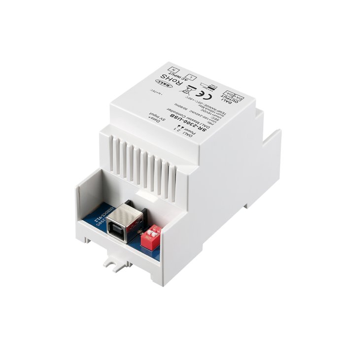 Jednostka sterująca DALI-2 master o oznaczeniu SR-2300-USB to wysokiej klasy produkt elektroniczny do centralnego sterowania oświetleniem w systemach opartych na protokole DALI (Digital Addressable Lighting Interface). Umożliwia programowanie scen i funkcji oświetlenia za pomocą aplikacji na komputer z systemem Windows. DALI-2 master SR-2300-USB jest głównym elementem sterującym, który komunikuje się z innymi urządzeniami DALI za pomocą komunikacji dwukierunkowej. Urządzenie zawiera wbudowany zasilacz do zasilania magistrali DALI Bus (opcjonalnie można go wyłączyć i zastąpić innym zasilaczem DALI Bus).