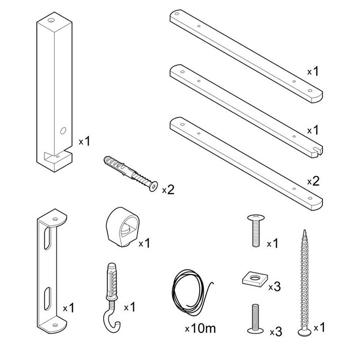 Regulowane ramię do lampy Pinocchio XL umożliwia łatwy montaż na powierzchni za pomocą standardowych elementów mocujących, takich jak wkręty i kołki. W zestawie znajdują się wszystkie akcesoria do mocowania.