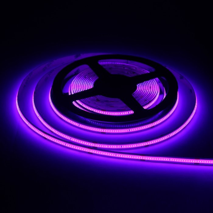 Taśma LED fioletowa COB 24V renomowanego producenta Lux Miners zapewnia wysoką jakość wykonania z naciskiem na doskonałe właściwości mechaniczne i znakomite parametry świetlne. Przy jej projektowaniu i produkcji położono nacisk na uzyskanie dokładnego i wiernego odwzorowania fioletowego światła.