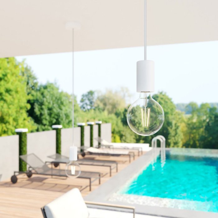 Biały kabel materiałowy do zastosowań zewnętrznych, o oznaczeniu 2x1 mm² SM01, wyróżnia się wysoką jakością i zastosowanymi materiałami. Kabel wchodzi w skład systemu oświetlenia zewnętrznego EIVA IP65, który zaprojektowali i opatentowali włoscy mistrzowie światła. Kabel elektryczny zewnętrzny vintage 2x1 mm² został tak zaprojektowany, aby umożliwić tworzenie opraw oświetleniowych wiszących oraz oświetlenia zewnętrznego całkowicie dostosowanego do twoich potrzeb, a wszystko to przy zachowaniu wyjątkowej jakości wykonania i najwyższych standardów bezpieczeństwa. Bądź kreatywny, uwolnij fantazję i znajdź swój styl dla oświetlenia zewnętrznego.