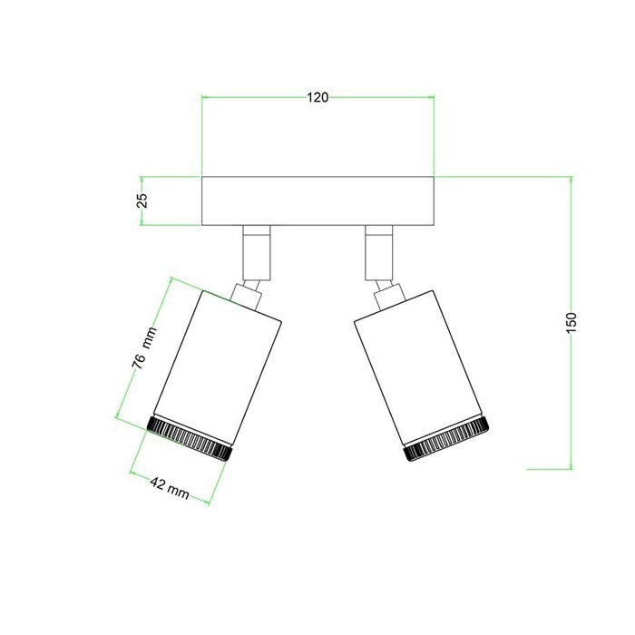 Kinkiet 2-punktowy regulowany sam w sobie jest eleganckim rozwiązaniem jako oświetlenie dekoracyjne. Na jego wygląd ma wpływ także wybrana żarówka. Elementem zestawu są żarówki z trzonkiem GU10 MINI. Rozmiar MINI żarówki GU10 to konieczność w przypadku tego kinkietu. W lampce nie można zamontować standardowych żarówek GU10 ze względu na ich duży rozmiar.