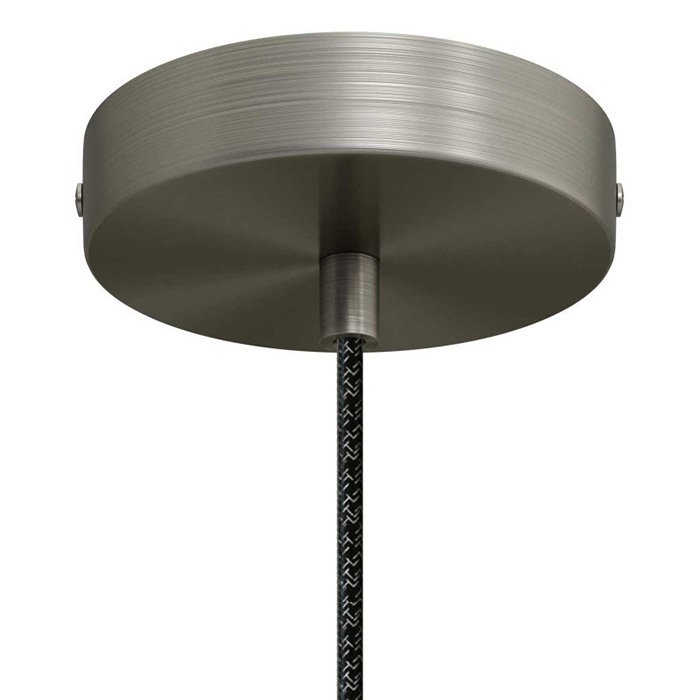 - czarny tablicowy | ⚫ podsufitka do lamp metalowa Ø120 mm z walcowatą blokadą kabla [KRM57FCVNTERM], ⚫ kabel retro "naturalny antracytowy" RN03 - lniany | długość 120 cm: [XZ2RN03], ⚫ klosz ceramiczny Campana XS: [EKMCLABI], ⚫ biała oprawka żarówki plastikowa E27: [PL27PBLI]