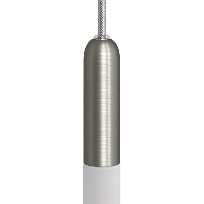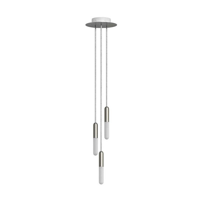 - tytan szczotkowany | ⚫ podsufitka do lamp metalowa Rose-One Ø200 mm - z trzema otworami i białym korpusem [KROR203TF106], ⚫ kabel materiałowy szary RM03 - jedwabny | długość 150/165/180 cm: [XZ2RM03], ⚫ 3x oprawka żarówki ozdobna E14 z ukrytą blokadą kabla P-Light tytan szczotkowany [KBME14TIS]