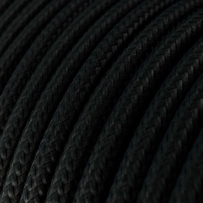 - czarny | ⚫ podsufitka do lamp metalowa Ø120 mm z walcowatą blokadą kabla [KRM57FCVNTERM], ⚫ kabel materiałowy czarny RM04 - jedwabny | długość 120 cm: [XZ2RM04], ⚫ klosz z drutu z oprawką E27 Ghostbell Ø12,5cm: [KPAM24VNSVN]