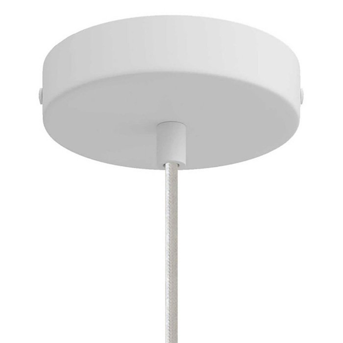 - biały | ⚫ podsufitka do lamp metalowa Ø120 mm z walcowatą blokadą kabla [KRM57FCVBOTERM], ⚫ kabel materiałowy biały RM01 - jedwabny | długość 120 cm: [XZ2RM01], ⚫ klosz z drutu z oprawką E27 Ghostbell Ø12,5cm: [KPAM24VBOSVBO]