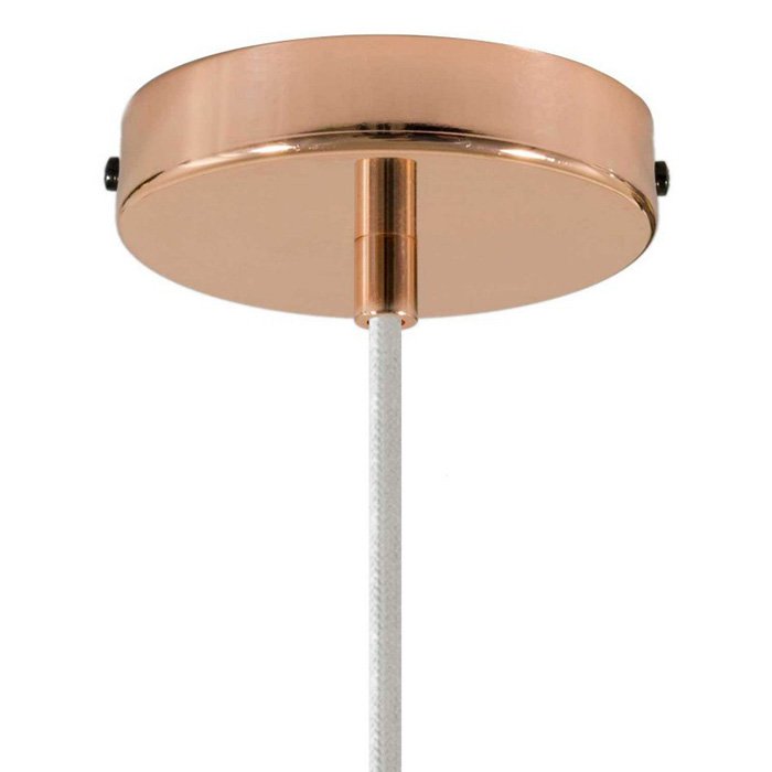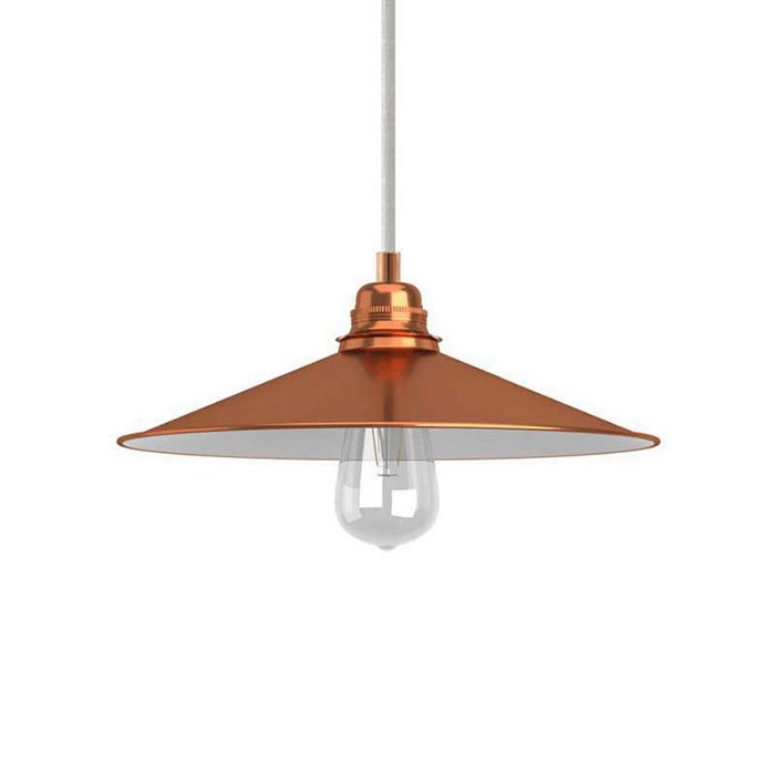 - miedź - RC01 | ⚫ podsufitka do lamp metalowa Ø120 mm z walcowatą blokadą kabla [KRM57FCRATERM], ⚫ kabel tekstylny biały RC01 - bawełniany | długość 120 cm: [XZ3RC01], ⚫ klosz metalowy emaliowany Swing Ø30cm: [PAM13VRL], ⚫ miedziana oprawka żarówki retro E27 - z kołnierzem i walcowatą blokadą kabla: [PL27MRATFTERM]