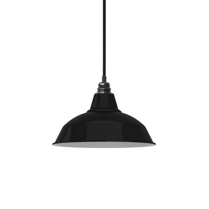 - czarny | ⚫ podsufitka do lamp metalowa Ø120 mm z walcowatą blokadą kabla [KRM57FCBRTERM], ⚫ kabel tekstylny czarny RC04 - bawełniany | długość 120 cm: [XZ3RC04], ⚫ klosz metalowy emaliowany Bistrot Ø30cm: [KPAM10VNL], ⚫ czarna perłowa oprawka żarówki retro E27 - z kołnierzem i walcowatą blokadą kabla: [PL27MARTFTERM]