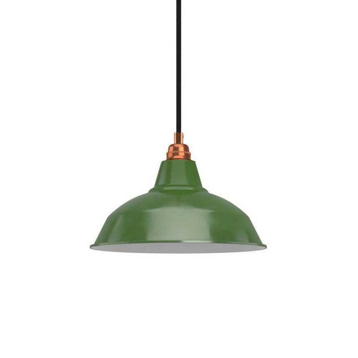 - zielony | ⚫ podsufitka do lamp metalowa Ø120 mm z walcowatą blokadą kabla [KRM57FCRATERM], ⚫ kabel tekstylny czarny RC04 - bawełniany | długość 120 cm: [XZ3RC04], ⚫ klosz metalowy emaliowany Bistrot Ø30cm: [KPAM10VVL], ⚫ miedziana oprawka żarówki retro E27 - z kołnierzem i walcowatą blokadą kabla: [PL27MRATFTERM]