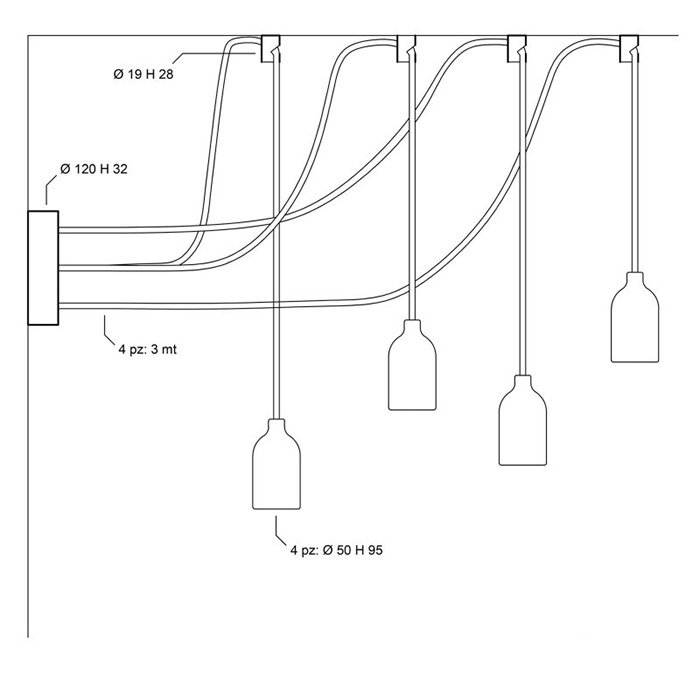 - 4x Oprawka żarówki E27 | Maksymalna moc żarówki, którą można umieścić w lampie, to 40 W