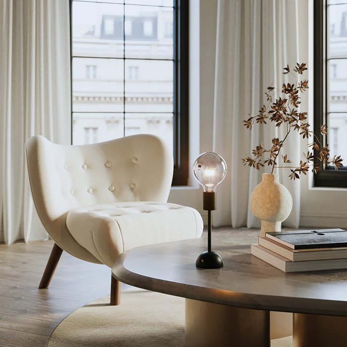 Lampa stołowa na baterie Cables02 ze srebrną żarówką 5V o wielkości G125 to przenośna lampa o niezwykle wszechstronnym zastosowaniu. Wyróżnia się wysoką jakością wykonania i materiałami, które przeszły staranną selekcję. Naszym celem było stworzenie idealnie modułowej lampy przenośnej z ładowaniem na USB-C. Akumulator Li-ion 18650 nie wchodzi w skład zestawu i należy go zakupić osobno.