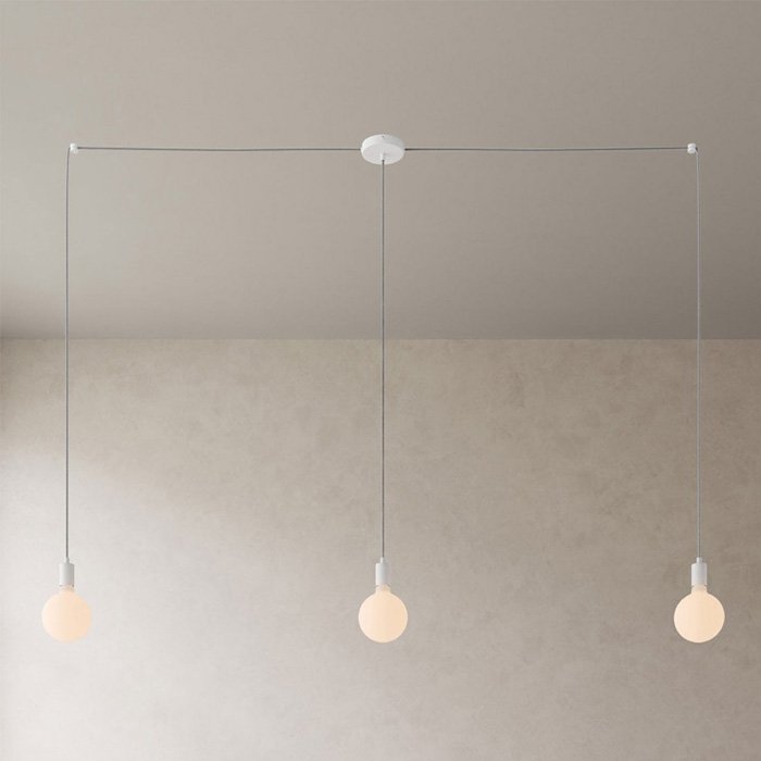 - biały | ⚫ podsufitka do lamp rozgałęziacz metalowa Ø120 mm - z trzema otworami [KRM12FC2LVBOTERM], ⚫ kabel w oplocie ze wzorem w zygzaki "czarny + biały" RZ04 - jedwabny | długość: 220, 120, 220 cm: [XZ2RZ04], ⚫ 3x biała matowa oprawka żarówki metalowa E27 z walcowatą blokadą kabla [KBM4011VBOTERM], ⚫ 2x biały uchwyt do przewodów (2x0,75 mm i 3x0,75 mm) sufitowy decentralizacyjny - plastikowy [DCG01BIA], ⚫ szybkozłączka elektryczna WAGO 2x4 [221-412], ⚫ szybkozłączka elektryczna WAGO 5x4 [221-415]