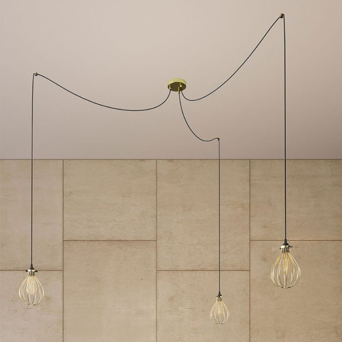- Lampa pająk długie kable Spider z trzema drucianymi abażurami