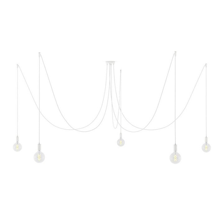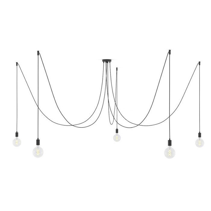 Lampa Spider Metal to wyjątkowa wisząca lampa sufitowa, która jest zarówno funkcjonalna, jak i dekoracyjna. Niektórzy mogą się bać nazwy pająk, ale nie ma takiej potrzeby. Jest to fascynująca lampa wisząca z pięcioma długimi ramionami, których położenie można w dowolny sposób regulować podczas montażu. Nasza lampa sufitowa pająk Spider Metal może być doskonałą alternatywą dla każdego dużego żyrandola i świetnym wyborem dla tych, których interesuje niecodzienna lampa do dużych pomieszczeń. Lampa Spider Metal może oświetlić dużą powierzchnię. Jej ramiona mogą być także zawieszone nad konkretnymi miejscami w pomieszczeniu. Elastyczność i różnorodność zastosowań to jedne z największych zalet tego typu oświetlenia. Wszystkie kreatywne dusze będą zachwycone możliwością wyboru spośród kilku wariantów kolorystycznych. Każdy z elementów takich jak 1x podsufitka lampy, 5x przewód w oplocie tekstylnym o długości 5x 400 cm, 5x haczyki sufitowe do mocowania kabla oraz 5x metalowe oprawki żarówek zostały starannie dobrane i dopasowane do ostatniego szczegółu. Charakterystyczne elementy takie jak podsufitka i oprawki żarówek wykonane są z metalu o doskonałym wykończeniu i wykonaniu. Ich niepowtarzalny wygląd i jakość gwarantuje produkcja Made in Italy. Naszym celem było stworzenie żyrandola typu pająk o wyjątkowym wyglądzie i właściwościach.