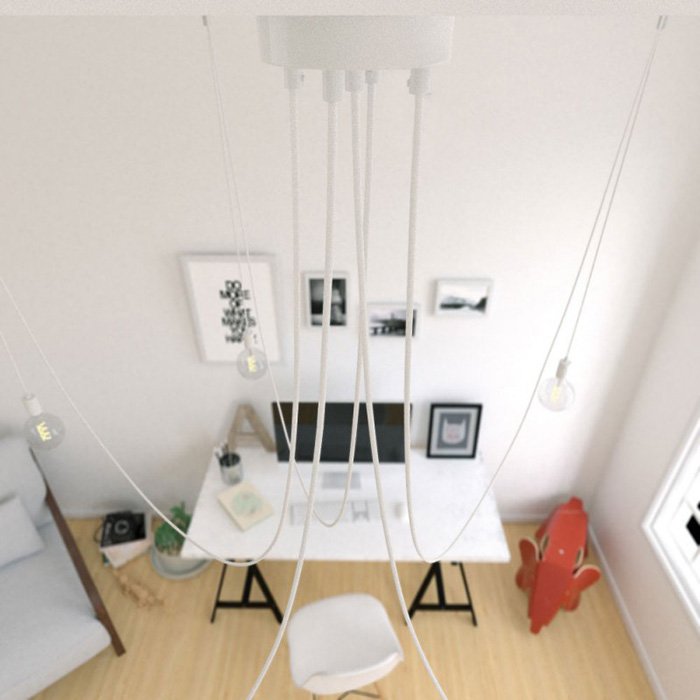 Lampa sufitowa pająk sprawdzi się przy oświetleniu dużych pomieszczeń. Żyrandol typu pająk nadaje się również do oświetlenia pomieszczenia, w którym jedno wyjście kabli w suficie nie wystarcza do całościowego oświetlenia przestrzeni. Dzięki możliwości zawieszenia poszczególnych kabli w indywidualnych pozycjach i odległościach od podsufitki, oświetlenie można dostosować do własnych potrzeb. W projektach mieszkaniowych oświetlenie można wykorzystać do oświetlenia kuchni, salonu czy klatki schodowej. W sektorze komercyjnym ten rodzaj oświetlenia jest również bardzo popularny. Służy do oświetlania korytarzy i hal, jak również restauracji i kawiarni. Nasze zalecenia dotyczące tego, do jakiej przestrzeni nadaje się lampa pająk, należy traktować tylko jako wskazówkę. Lampy sufitowe to element stylu wnętrz, który najlepiej zna jego twórca.