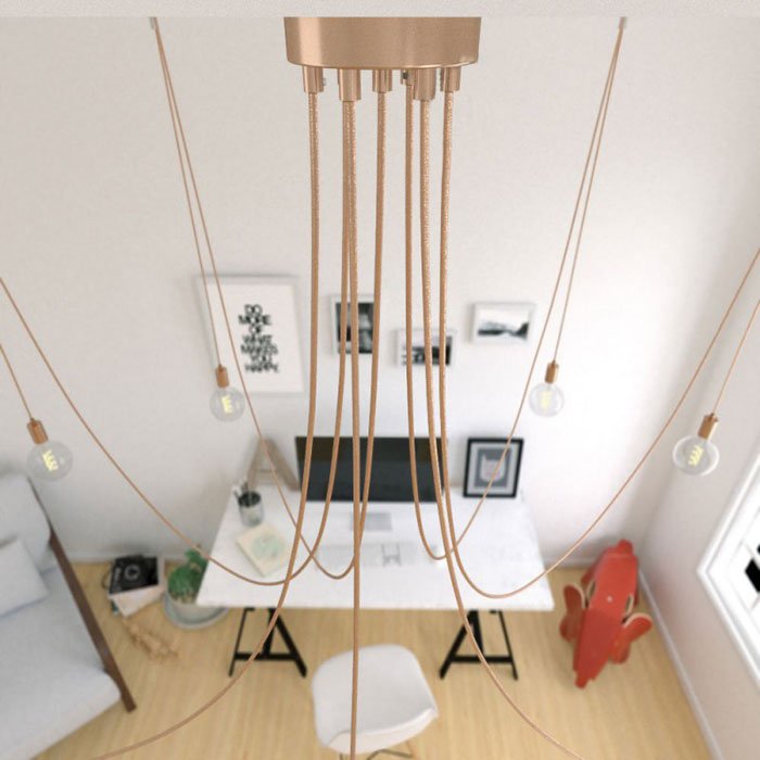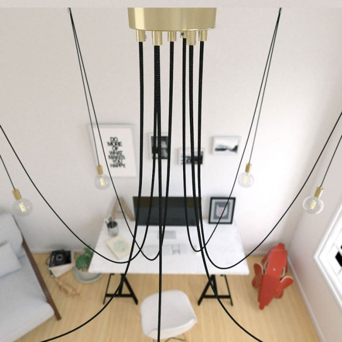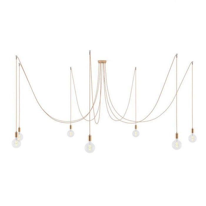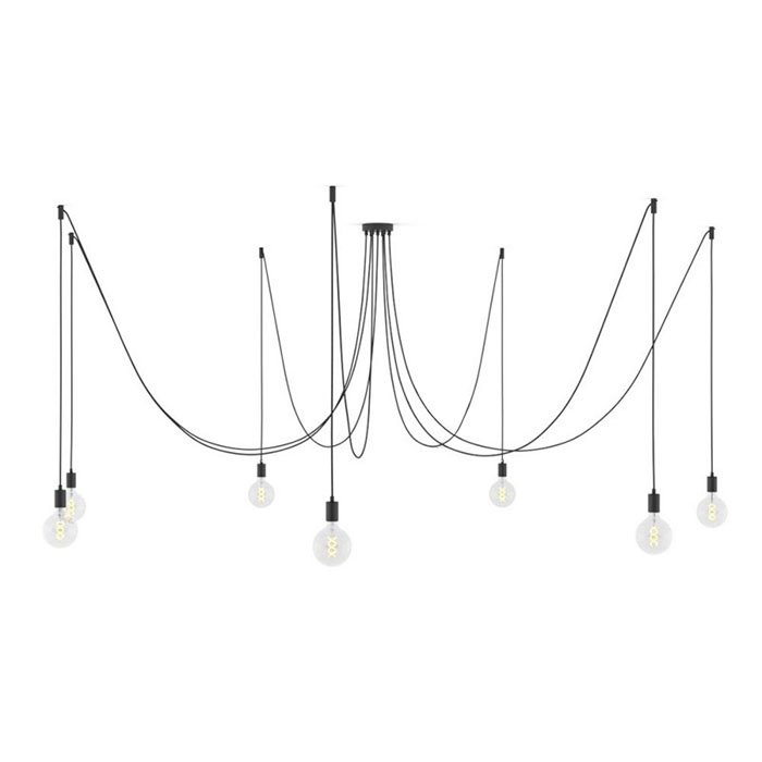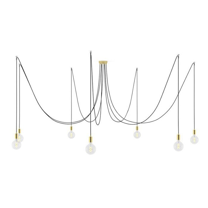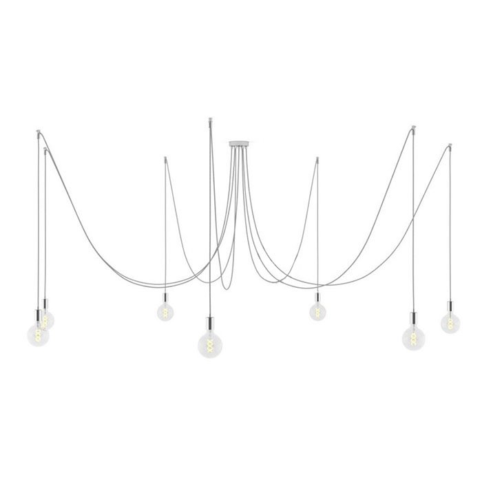 Lampa Spider Metal to wyjątkowa wisząca lampa sufitowa, która jest zarówno funkcjonalna, jak i dekoracyjna. Niektórzy mogą się bać nazwy pająk, ale nie ma takiej potrzeby. Jest to fascynująca lampa wisząca z siedmioma długimi ramionami, których położenie można w dowolny sposób regulować podczas montażu. Nasza lampa sufitowa pająk Spider Metal może być doskonałą alternatywą dla każdego dużego żyrandola i świetnym wyborem dla tych, których interesuje niecodzienna lampa do dużych pomieszczeń. Lampa Spider Metal może oświetlić dużą powierzchnię. Jej ramiona mogą być także zawieszone nad konkretnymi miejscami w pomieszczeniu. Elastyczność i różnorodność zastosowań to jedne z największych zalet tego typu oświetlenia. Wszystkie kreatywne dusze będą zachwycone możliwością wyboru spośród kilku wariantów kolorystycznych. Każdy z elementów takich jak 1x podsufitka lampy, 7x przewód w oplocie tekstylnym o długości 7x 400 cm, 7x haczyki sufitowe do mocowania kabla oraz 7x metalowe oprawki żarówek zostały starannie dobrane i dopasowane do ostatniego szczegółu. Charakterystyczne elementy takie jak podsufitka i oprawki żarówek wykonane są z metalu o doskonałym wykończeniu i wykonaniu. Ich niepowtarzalny wygląd i jakość gwarantuje produkcja Made in Italy. Naszym celem było stworzenie żyrandola typu pająk o wyjątkowym wyglądzie i właściwościach.