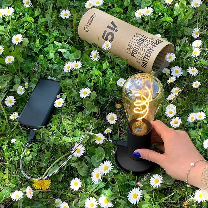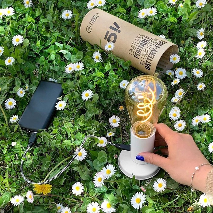 Przenośna lampa LED na USB SI! wyposażona jest w żarówkę 5 V o rozmiarze ST64 i metalową podstawę stołową. W zestawie nie ma natomiast kabla USB-C. To w 100% wolne od plastiku opakowanie zostało zaprojektowane jako etui wielokrotnego użytku na lampę, aby uczynić ją jeszcze bardziej ekologiczną i łatwą w transporcie.
