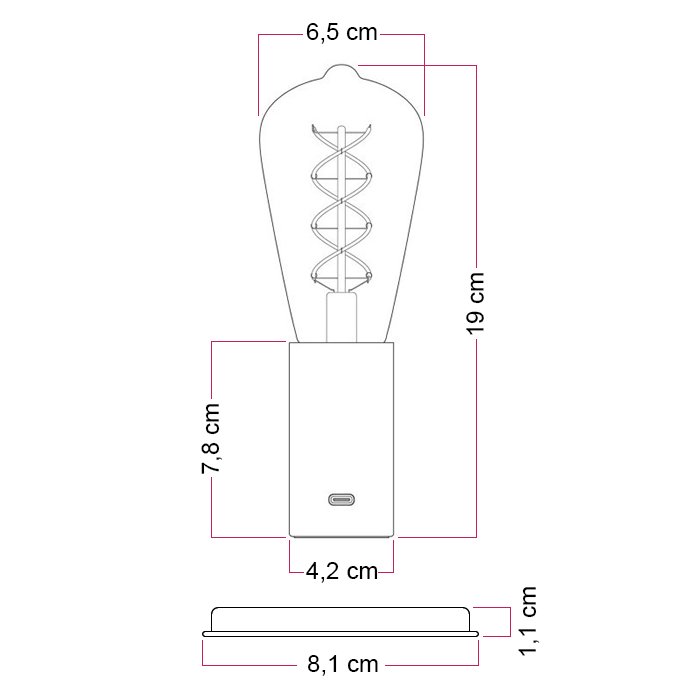- Metalowa podstawa - Wymiary: Ø81 mm | wysokość: 210 mm