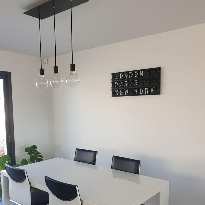 Lampa wisząca nad stół 3x E27 to jedna z fascynujących lamp sufitowych wiszących. Wyeksponowane żarówki lampy nadają pomieszczeniu niesamowity efekt scenograficzny. Lampa z oprawkami wyróżnia się wyjątkowej jakości wykonaniem i materiałami, które przeszły staranną selekcję. Naszym celem było stworzenie doskonałego dużego żyrandola żarówkowego, który zainteresuje wszystkie kreatywne dusze. Detale dużej lampy sufitowej dopełniają takie metalowe komponenty jak 3 oprawki żarówki i rozeta do lamp XXL Rose One. Niepowtarzalnego charakteru nadają żyrandolowi designowe kable w oplocie tekstylnym o długości 120 cm. Kable lampy można łatwo skrócić do wybranej długości podczas montażu oprawy. Wszystkie komponenty nowoczesnego żyrandola wyróżniają się wysoką jakością techniczną i wyjątkowym designem. Pochodzą one z produkcji MADE IN ITALY.