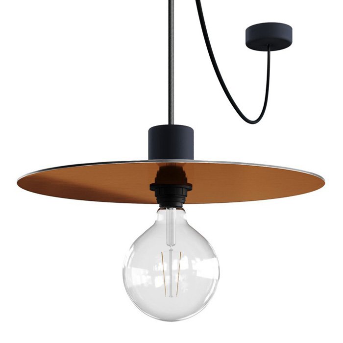 - miedź szczotkowana - brąz szczotkowany | ⚫ podsufitka do lamp zewnętrzna Ø125 mm EIVA IP65 [KEIVAROSNE], ⚫ kabel materiałowy do montażu zewnętrznego IP65 "czarny" SM04 - jedwabny | długość 500 cm: [XZ2SX08], ⚫ abażur kompozytowy wodoodporny Ellepì IP65 Ø40cm: [DDRASOTS], ⚫ czarna karbonowa oprawka żarówki zewnętrzna E27 EIVA ELEGANT IP65 - z kołnierzem: [KEIVAEL02NE] ⚫ chromowy klips na kable Sarè (2x 0,75 i 3x0,75 mm) - metalowy [FCM01CR]