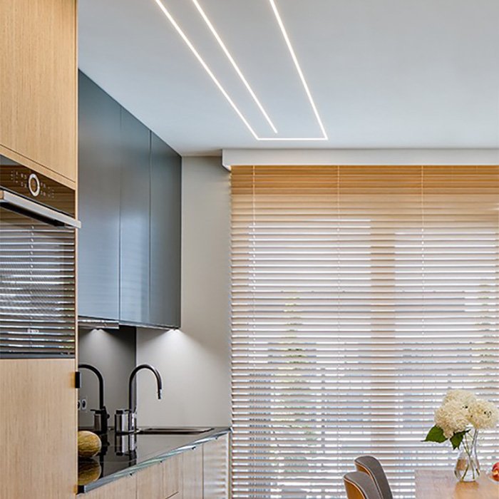 Oprawa wpuszczana do karton-gipsu w wykonaniu liniowym o oznaczeniu KALINE i opcjonalnej długości 1m | 2m | 3m (lub na życzenie na miarę) to nie tylko zaawansowane technologicznie rozwiązanie, ale także stylowy element designu, który natychmiast przyciąga wzrok. Dzięki minimalistycznemu, liniowemu wykonaniu i montażowi w suficie podwieszanym z płyt gipsowo-kartonowych lub w ścianie, zapewnia czysty, elegancki wygląd z delikatną linią świetlną o szerokości zaledwie 11 mm, która nadaje wnętrzu poczucie luksusu i wyjątkowości. Oprawa sufitowa wpuszczana KALINE zapewnia duży strumień świetlny w niezwykle kompaktowym wykonaniu. W zależności od wielkości pomieszczenia lub wysokości sufitu może służyć zarówno jako oświetlenie główne, jak i dekoracyjne. Liniowe rozproszenie światła eliminuje ostre cienie i zapewnia jednorodne oświetlenie pomieszczenia, które idealnie nadaje się do oświetlenia w projektach mieszkaniowych i komercyjnych.