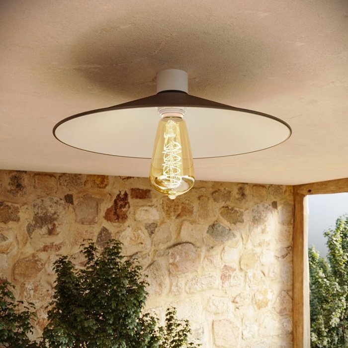 Minimalistyczna lampa sufitowa z metalowym kloszem i detalami w stylu retro dla tych, którzy szukają czegoś stonowanego, ale wyjątkowego. Lampa może bieć białą lub czarną soprawkę i jest ozdobiona kloszem w stylu vintage, dzięki czemu idealnie nadaje się zarówno do użytku komercyjnego, jak i domowego. Spełnia wymagania stopnia ochrony IP44. Zapewnia ciepłe i przyjemne oświetlenie nawet na zewnątrz: wyposaż swoje patio lub taras już dziś, lato jest tuż za rogiem!