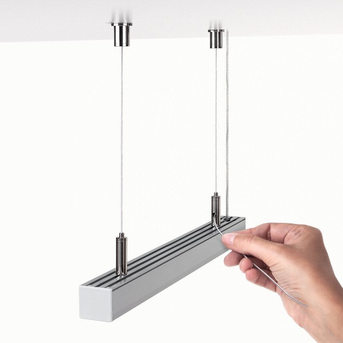 • Elegancki i minimalistyczny sposób zawieszania profili LED i opraw oświetleniowych.