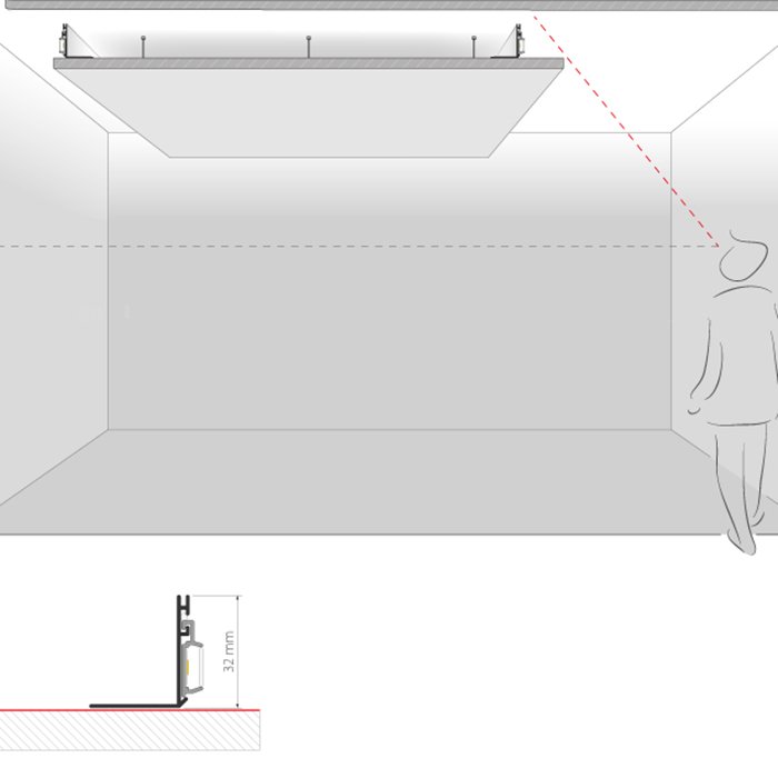 - Liniowe podświetlenie sufitu z karton-gipsu i sufitu podwieszanego - jest jednym z najbardziej zalecanych sposobów oświetlania pomieszczeń z punktu widzenia inżynierów oświetlenia, ze względu na rozproszone, stłumione światło.