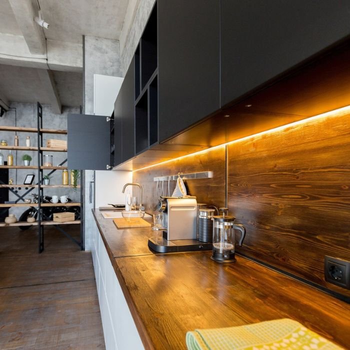 - Narożne oświetlenie mebli - oświetlenie krawędzi i półek | narożne oświetlenie blatu kuchennego