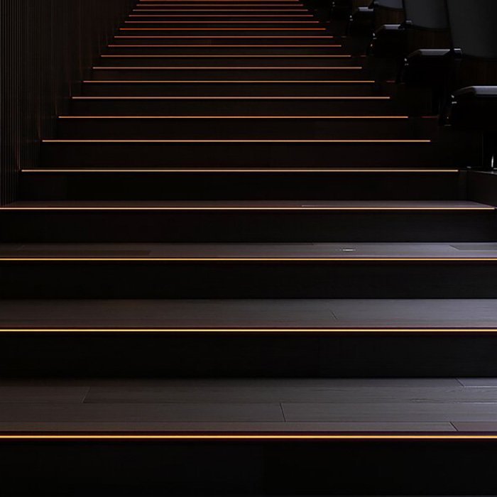 - Montaż powierzchniowy na krawędzi schodu - z możliwością oświetlenia dekoracyjnego lub oświetlenia ostrzegawczego.
