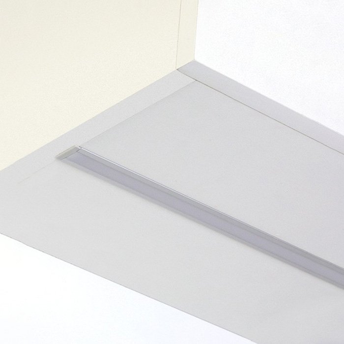 - Skrzydełka, które znajdują się wzdłuż listwy LED do zabudowy, maskują drobne niedoskonałości powstałe w wyniku tworzenia wpustu.