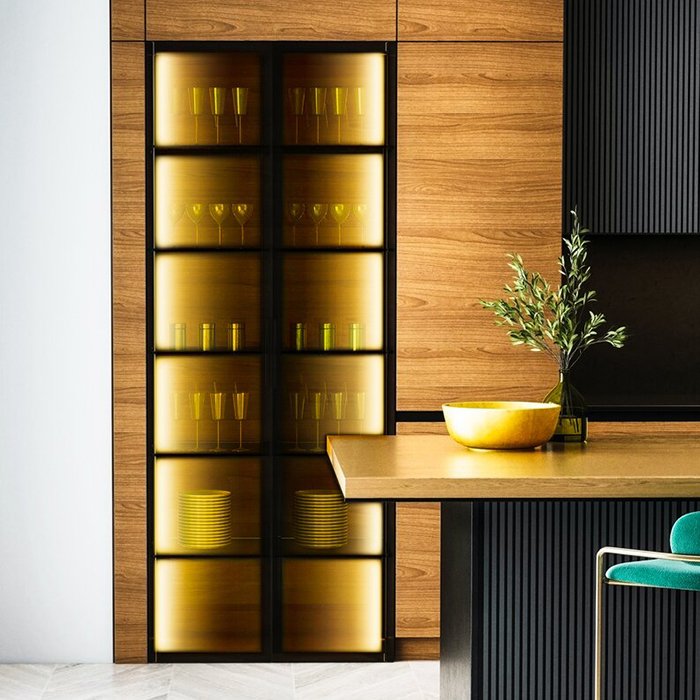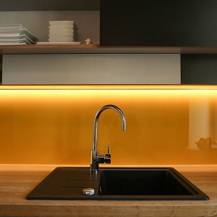 - Oświetlenie mebli - oświetlenie wszystkich elementów stolarki, w tym podświetlenie półek, cokołów lub szaf za pomocą taśm LED.