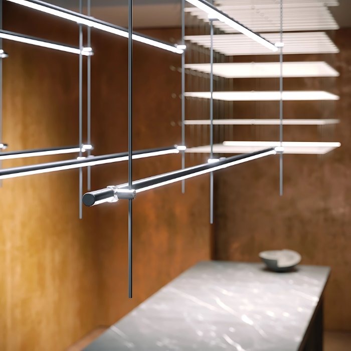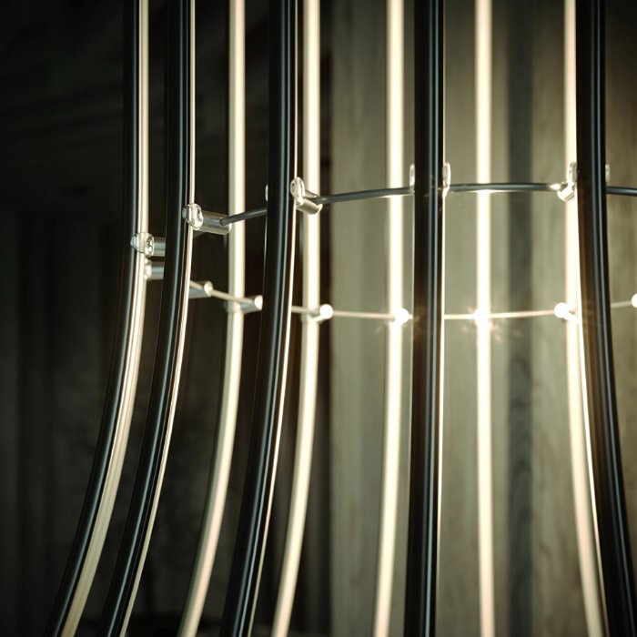 - Montaż zwieszany na suficie lub ścianie - na stalowej lince lub nierdzewnym metalowym wysięgniku z możliwością zmiany kierunku świecenia poprzez obrót oprawy.