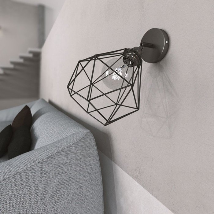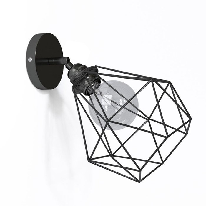 Loftowy kinkiet z abażurem drucianym Diamant Fermaluce Metal E27