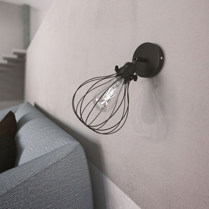 Loftowy kinkiet z abażurem drucianym Drop Fermaluce Metal E27