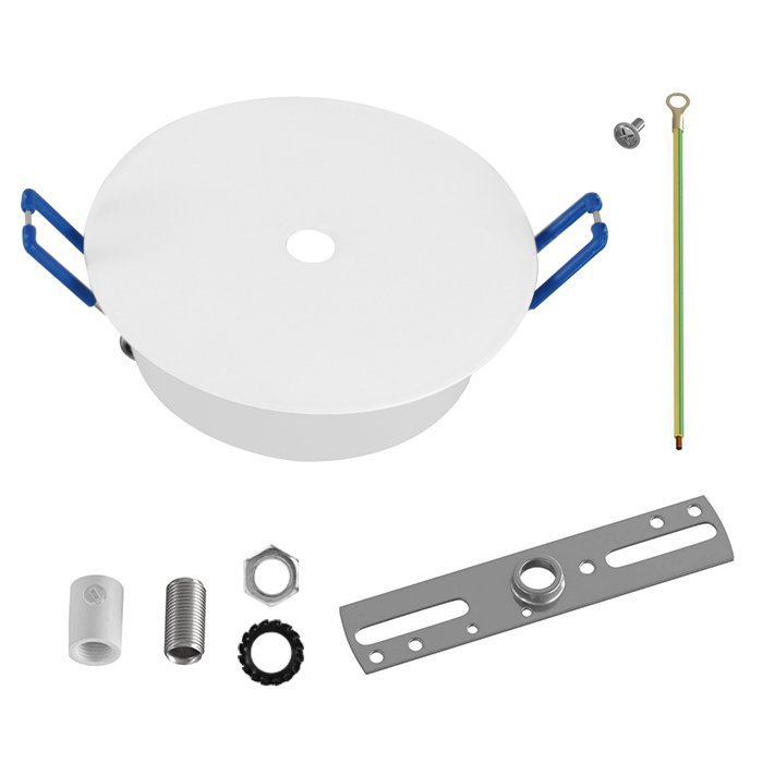 Metalowa podsufitka do zabudowy w suficie o średnicy Ø80 mm (instalacyjne Ø 60 mm) Metalins nadaje się do montażu na typowych powierzchniach, takich jak drewno, mur lub płyta gipsowo-kartonowa. Elementy mocujące (śruby i kołki) nie są dołączone do opakowania. Należy je odpowiednio dobrać do konkretnego rodzaju podłoża lub instalacji, możesz także wykorzystać #tablink#montaz#komponenty elektryczne##. Ze względu na konieczność manipulowania przy podłączeniu do sieci elektrycznej zalecamy, aby instalację przeprowadziła wykwalifikowana osoba posiadająca odpowiednie uprawnienia elektryczne.