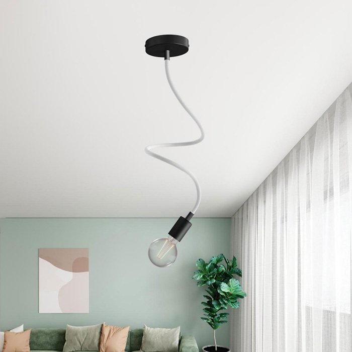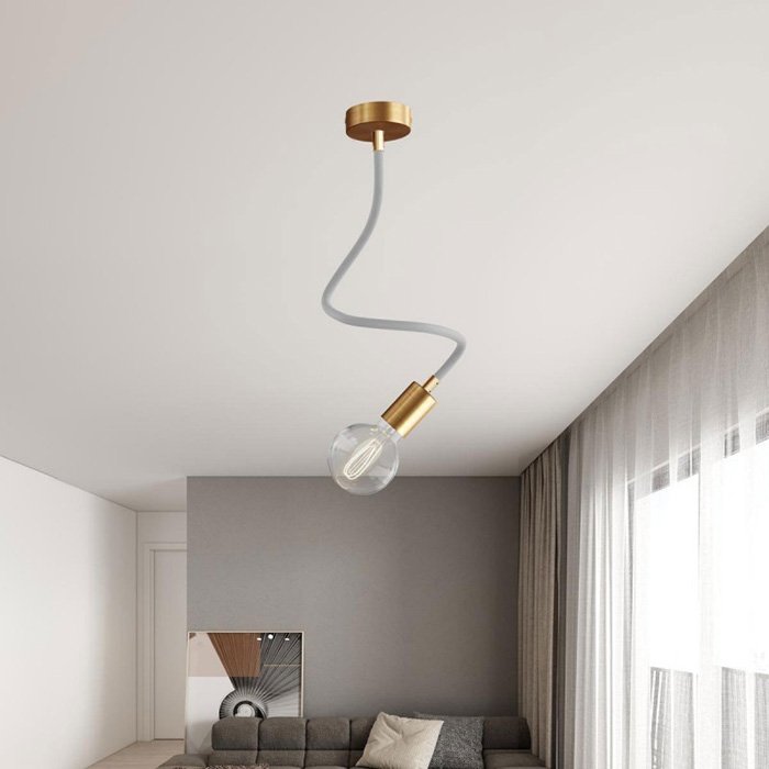 Metalowe elastyczne ramię do lampy Creative Flex z kablem 2x0,75, metalowymi końcówkami i oplotem jedwabnym RM02 - srebrny