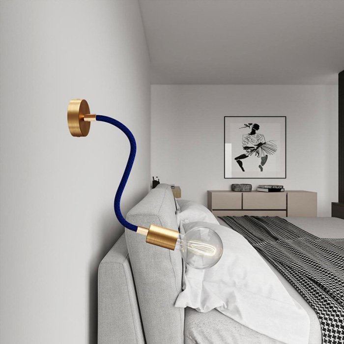 Pleciona powierzchnia z delikatnej tkaniny Rayon (sztucznego jedwabiu) nadaje metalowemu ramieniu elastycznemu z solidną mechaniką wyjątkowy wygląd, dzięki czemu staje się on nie tylko funkcjonalnym, ale i estetycznym elementem wnętrza.