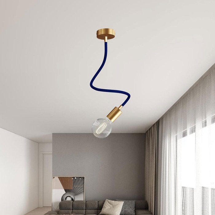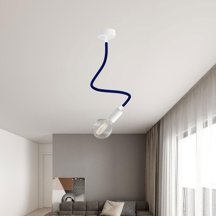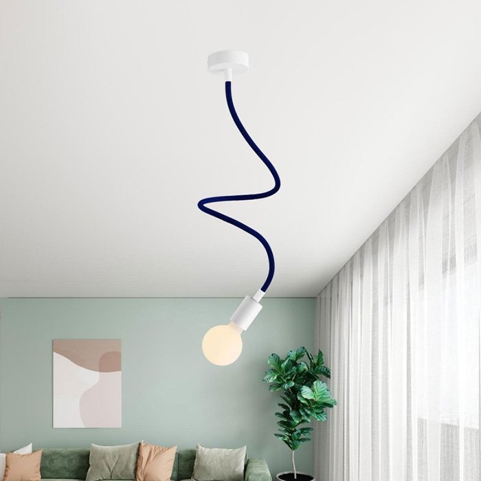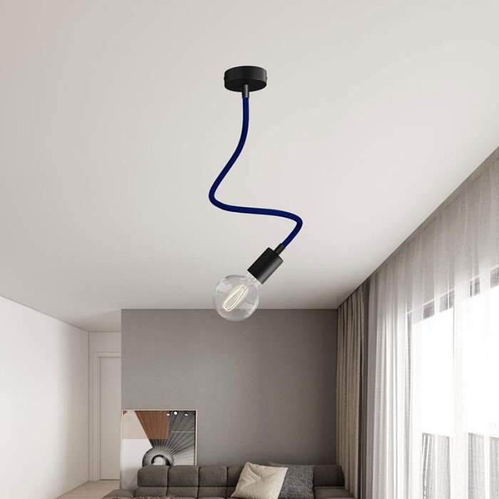Granatowe elastyczne ramię do lampy i kreatywnych instalacji oświetleniowych Flex RM20 to doskonały wybór dla wszystkich, którzy chcą tworzyć oryginalne oprawy oświetleniowe lub eksperymentować z różnymi sposobami montażu oświetlenia. Umożliwia pochylanie, obracanie i kształtowanie, jest wyposażone w rurkę gwintowaną M10 na obu końcach. Wewnątrz ramienia znajduje się już przewód 2×0,75 mm², który wystaje po obu stronach, co ułatwia podłączenie elementów, takich jak sufitowe lub ścienne osłony lamp lub oprawki do żarówek.