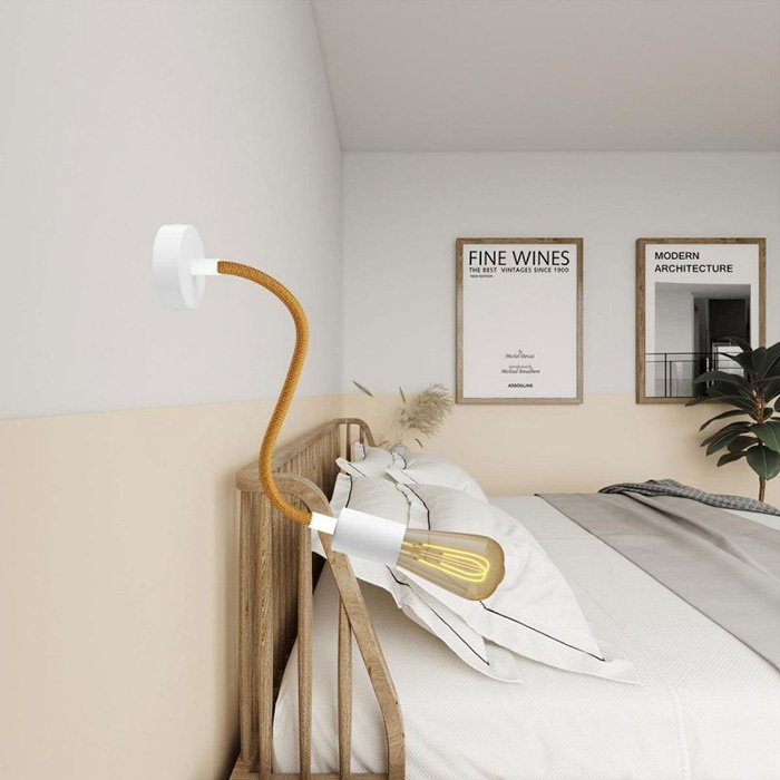 Pleciona powierzchnia z delikatnej tkaniny Rayon (sztucznego jedwabiu) nadaje metalowemu ramieniu elastycznemu z solidną mechaniką wyjątkowy wygląd, dzięki czemu staje się on nie tylko funkcjonalnym, ale i estetycznym elementem wnętrza.