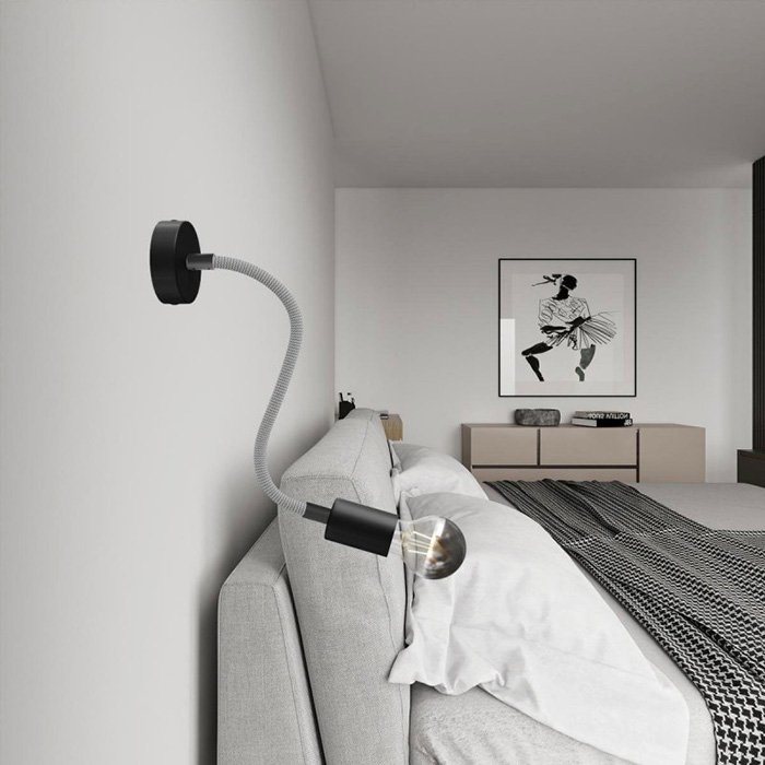 Pleciona powierzchnia z delikatnej tkaniny Rayon (sztucznego jedwabiu) nadaje metalowemu ramieniu elastycznemu z solidną mechaniką wyjątkowy wygląd, dzięki czemu staje się on nie tylko funkcjonalnym, ale i estetycznym elementem wnętrza.