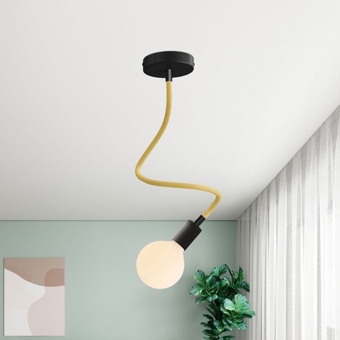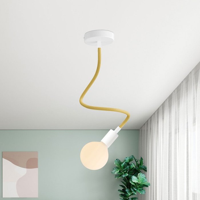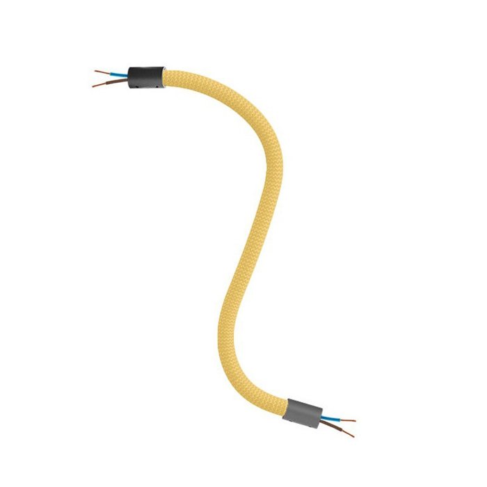 Żółte elastyczne ramię do lampy i kreatywnych instalacji oświetleniowych Flex RM79 to doskonały wybór dla wszystkich, którzy chcą tworzyć oryginalne oprawy oświetleniowe lub eksperymentować z różnymi sposobami montażu oświetlenia. Umożliwia pochylanie, obracanie i kształtowanie, jest wyposażone w rurkę gwintowaną M10 na obu końcach. Wewnątrz ramienia znajduje się już przewód 2×0,75 mm², który wystaje po obu stronach, co ułatwia podłączenie elementów, takich jak sufitowe lub ścienne osłony lamp lub oprawki do żarówek.