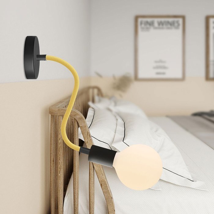 Pleciona powierzchnia z delikatnej tkaniny Rayon (sztucznego jedwabiu) nadaje metalowemu ramieniu elastycznemu z solidną mechaniką wyjątkowy wygląd, dzięki czemu staje się on nie tylko funkcjonalnym, ale i estetycznym elementem wnętrza.