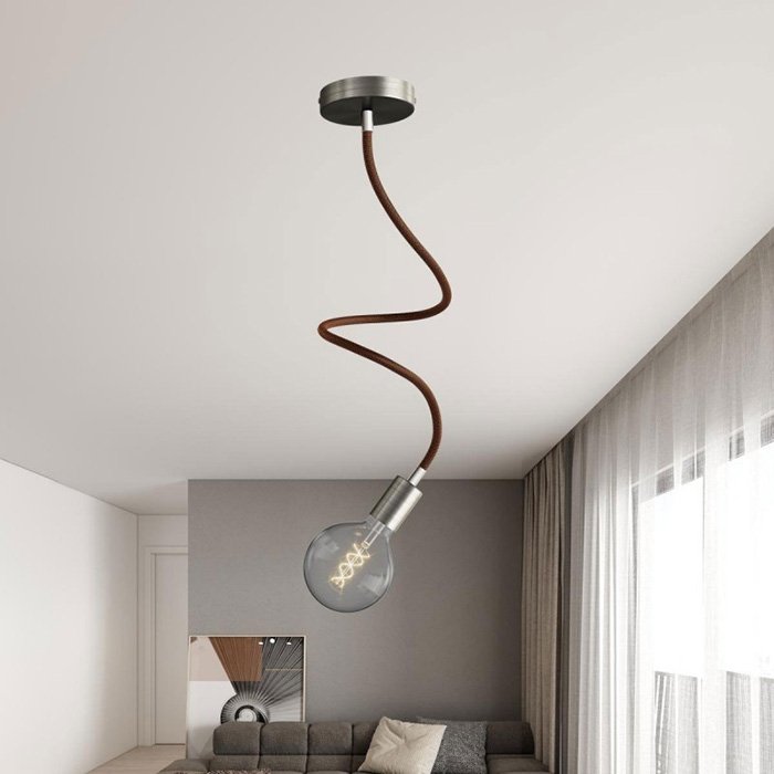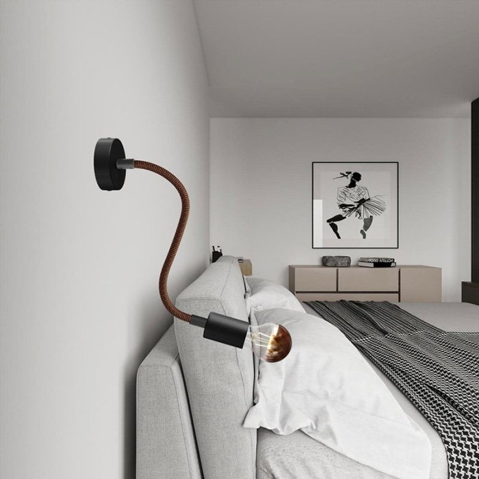 Pleciona powierzchnia z delikatnej tkaniny Rayon (sztucznego jedwabiu) nadaje metalowemu ramieniu elastycznemu z solidną mechaniką wyjątkowy wygląd, dzięki czemu staje się on nie tylko funkcjonalnym, ale i estetycznym elementem wnętrza.