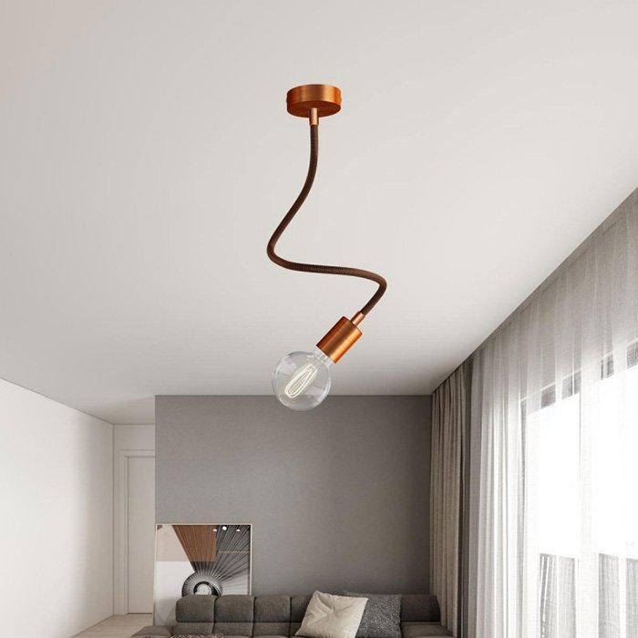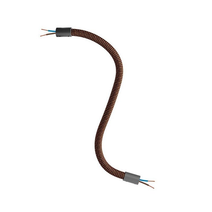 Whiskey-czarne elastyczne ramię do lampy i kreatywnych instalacji oświetleniowych Flex RZ22 to doskonały wybór dla wszystkich, którzy chcą tworzyć oryginalne oprawy oświetleniowe lub eksperymentować z różnymi sposobami montażu oświetlenia. Umożliwia pochylanie, obracanie i kształtowanie, jest wyposażone w rurkę gwintowaną M10 na obu końcach. Wewnątrz ramienia znajduje się już przewód 2×0,75 mm², który wystaje po obu stronach, co ułatwia podłączenie elementów, takich jak sufitowe lub ścienne osłony lamp lub oprawki do żarówek.