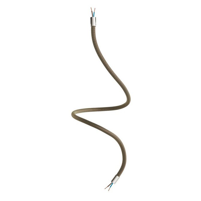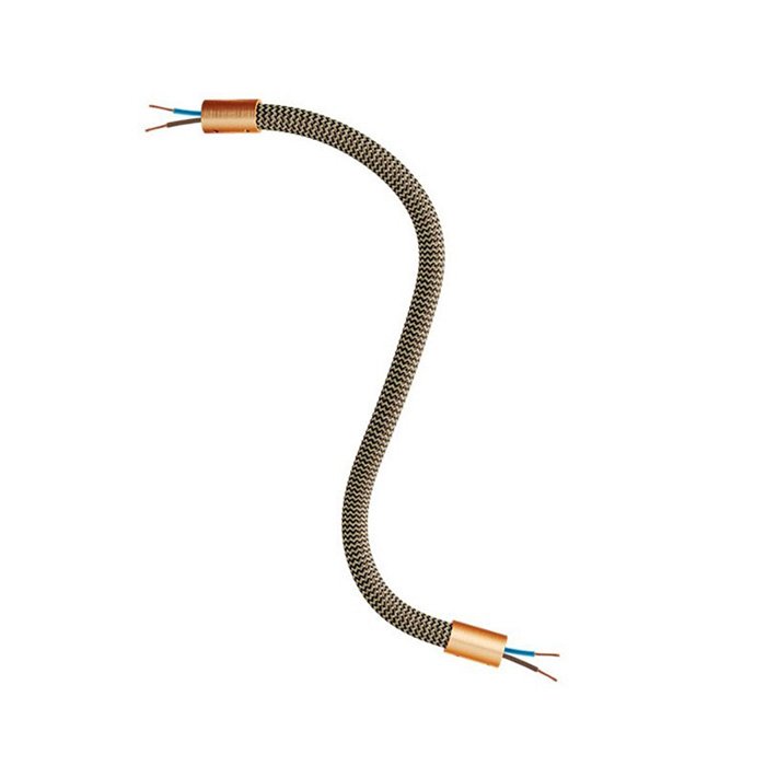 Złoto-czarne elastyczne ramię do lampy i kreatywnych instalacji oświetleniowych Flex RZ24 to doskonały wybór dla wszystkich, którzy chcą tworzyć oryginalne oprawy oświetleniowe lub eksperymentować z różnymi sposobami montażu oświetlenia. Umożliwia pochylanie, obracanie i kształtowanie, jest wyposażone w rurkę gwintowaną M10 na obu końcach. Wewnątrz ramienia znajduje się już przewód 2×0,75 mm², który wystaje po obu stronach, co ułatwia podłączenie elementów, takich jak sufitowe lub ścienne osłony lamp lub oprawki do żarówek.