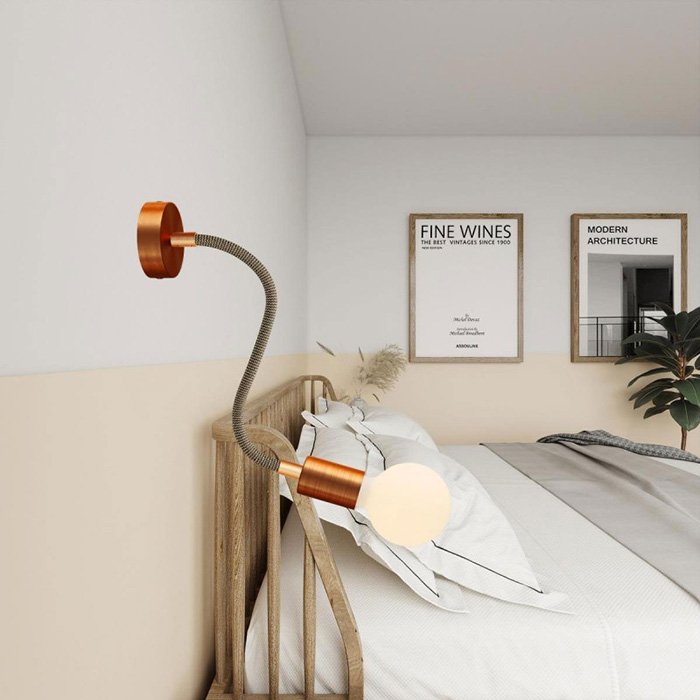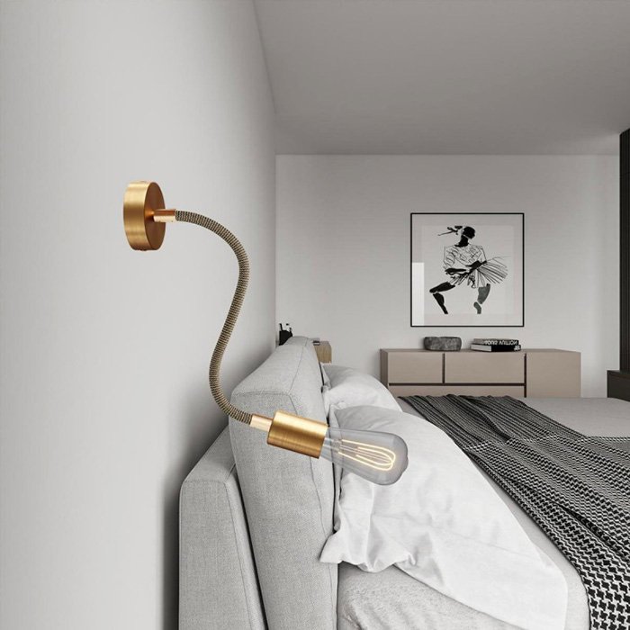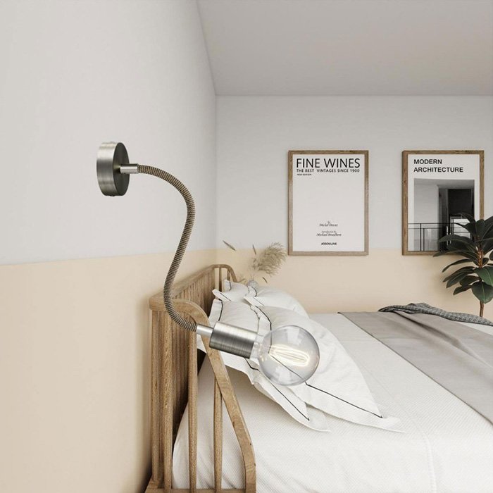 Pleciona powierzchnia z delikatnej tkaniny Rayon (sztucznego jedwabiu) nadaje metalowemu ramieniu elastycznemu z solidną mechaniką wyjątkowy wygląd, dzięki czemu staje się on nie tylko funkcjonalnym, ale i estetycznym elementem wnętrza.