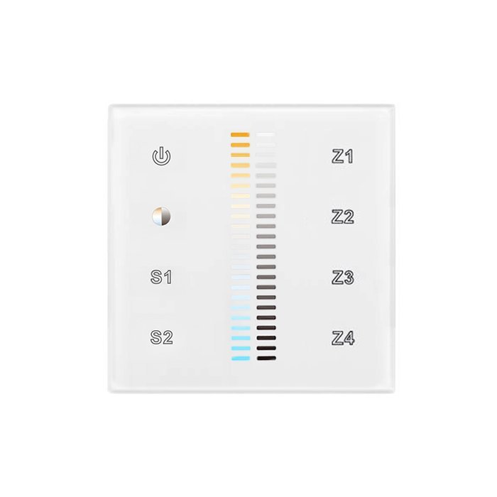 Radiowy ścienny sterownik CCT do taśm LED SR-2830B-AC z panelem dotykowym został zaprojektowany tak, aby zapewnić technicznie, stabilne i niezawodne rozwiązanie nawet w złożonych konfiguracjach w ramach ekosystemu RF-SUNRICHER.
