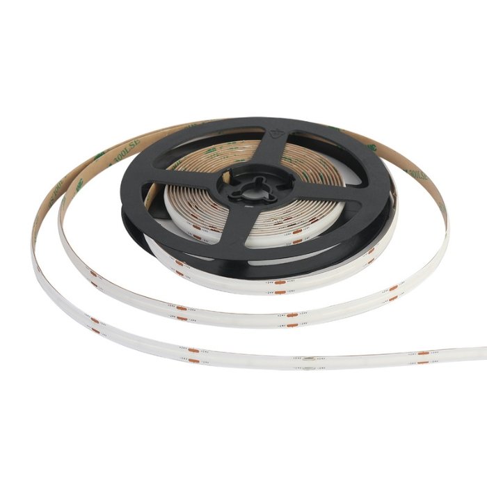 - Oryginalne opakowanie - obejmuje opakowanie elektrostatyczne, plastikową rolkę z nawiniętą taśmą COB 24V COB-SC24480E o długości 5 m, z kablami zasilającymi (AWG22 15 cm).
